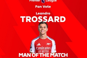 本场比赛特罗萨德首发出战,上半场打入一球。赛后他也以29.1%的得票率当选英超官方球迷票选本场最佳球员。