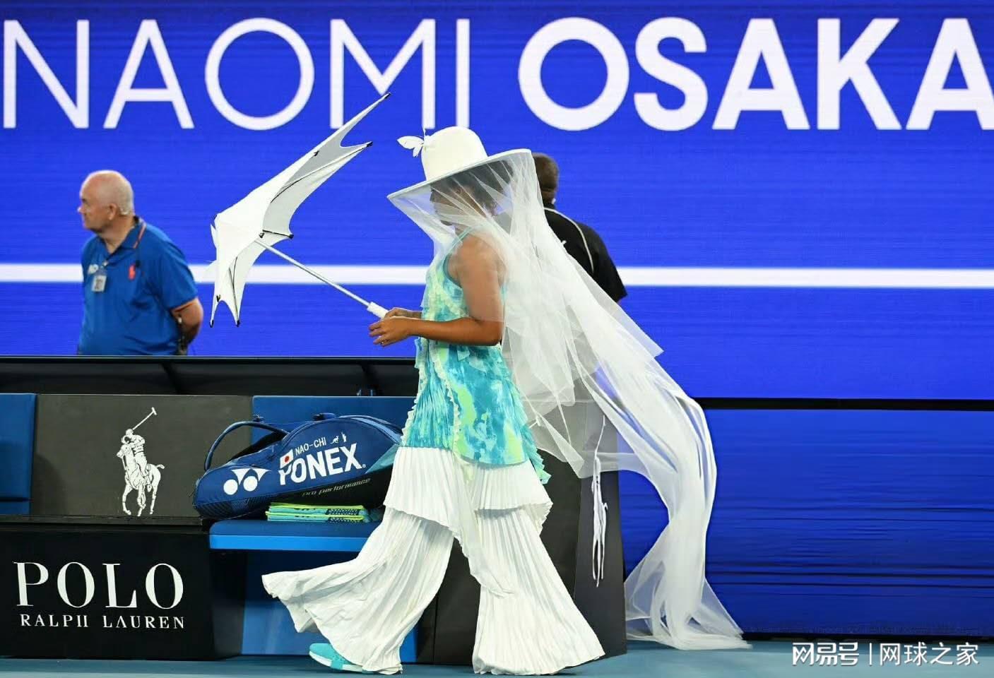 不过,比大坂直美的比赛更引人注目的是她的出场造型。一身纯白战袍搭配类似头纱的装饰,迅速引爆了社交媒体。